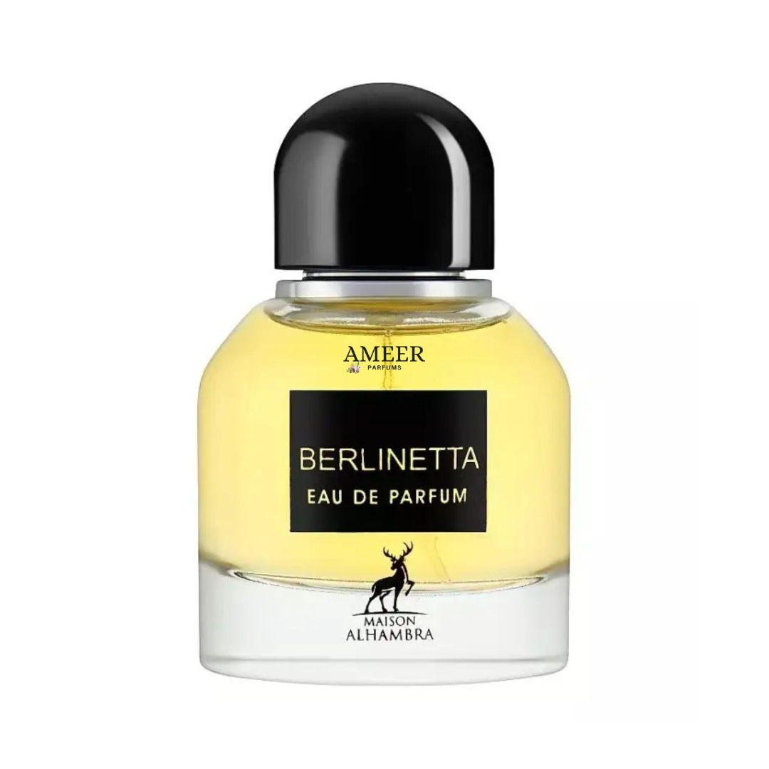 Plongez dans l’univers mystérieux de Berlinetta de Maison Alhambra, un parfum cuir mixte, lancé en 2022. Une fragrance élégante et profonde qui associe douceur fruitée et intensité sensuelle.